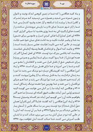 آیه ۳۰ سوره انفال پس از خدمتی بزرگ از سوی امیرالمومنین به مسلمانان نازل شد. سران قریش وقتی دیدند به هیچ وجه نمیتوانند جلوی گسترش اسلام و نبوت پیامبر(ص) را بگیرند، تصمیم به قتل ایشان گرفتند، خدا پیامبرش را از این تصمیم کفار با خبر کرد و آن شب امام علی(ع) به جای پیامبر(ص) در بستر ایشان خوابید و با به خطر انداختن جانش، جان رسول گرامی اسلام را نجات داد و این آیه نازل شد.در ادامه تلاوت ترتیل صفحه ۱۸۰ قرآن کریم شامل آیات ۲۶ تا ۳۳ سوره مبارکه انفال با صدای شهریار پرهیزکار تقدیم میشود.