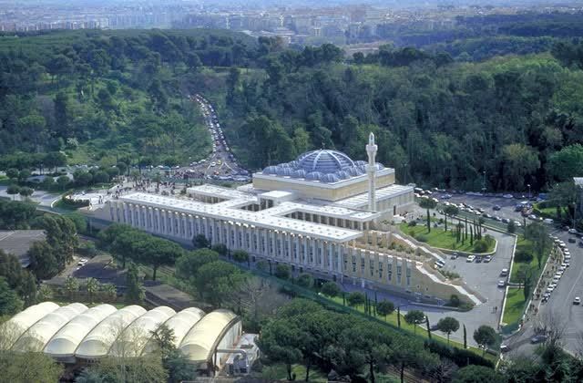 مسجد بزرگ رم در محور شمالی این شهر قرار دارد و مساحت آن به بیش از ۳۰ هزار متر مربع میرسد. از همین روی، این مسجد گنجایش هزاران نمازگزار را دارد. کار ساخت این مسجد بیش از دو دهه به طول انجامید. در سال ۱۹۷۴ به درخواست پادشاه سعودی یعنی «ملک فیصل»، شهرداری شهر رم زمینی را برای ساخت مسجد اختصاص داد. با این حال، سنگ بنای ساخت مسجد در سال ۱۹۸۴ نهاده شد. مسجد بزرگ رم در تاریخ ۲۱ ژوئن سال ۱۹۹۵ به طور رسمی افتتاح شد. این مسجد دارای یک صحن مستطیلی شکل است. در بیرون از مسجد یک آبشار کوچک دیده میشود و تصویر آن بر زیبایی نمای بیرونی مسجد افزوده است. در طراحی و ساخت این مسجد از طرحهای مراکشی استفاده شده است. طراحی داخلی مسجد به همین شکل انجام شده است. بر روی قسمتهایی پایینی ستونها و نیز دیوارهای مسجد مجموعههایی از نگاشتههای رنگارنگ حکاکی شده است.