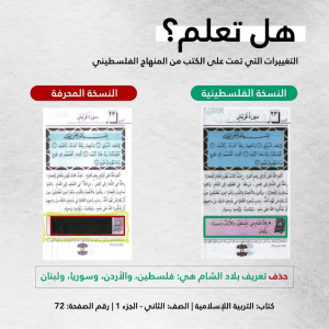 حدف توضیح بلاد شام: فلسطین، اردن، سوریه و لبنان از کتاب تربیت اسلامی