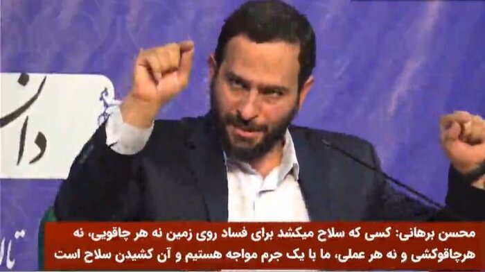 برهانی در ادامه اظهار کرد: طبق اعلام فقها اگر کسی به قصد اخافه ناس و سعی در فساد فی الارض تشهیر سلاح کند، مصداق محارب است.