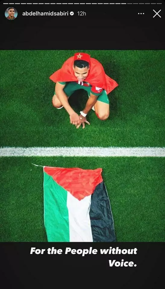 استوری عبدالحمید سبیری بازیکن تیم ملی فوتبال مراکش در حمایت از ملت فلسطین