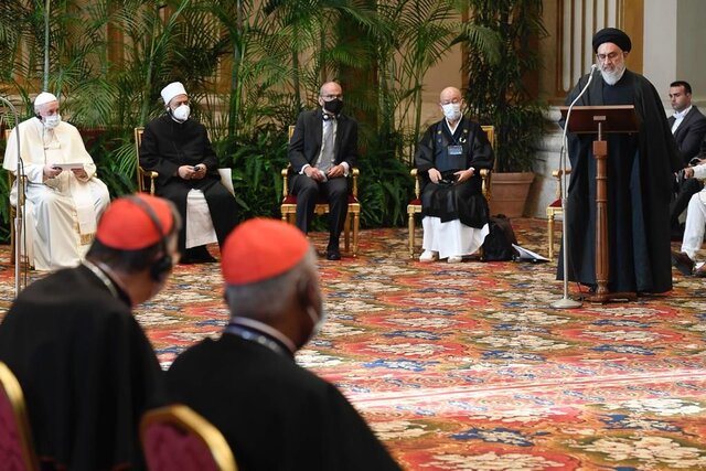 به گزارش «مبلغ» به نقل از کانال تلگرامی آیتالله محقق داماد، در اقدامی بینظیر و به دعوت پاپ فرانسیس، چهرههایی از تمامی ادیان اصلی دنیا در دوشنبه، ۱۲ مهرماه ۱۴۰۰ در واتیکان گرد هم آمدند تا با رایزنی با یکدیگر و تبادل آرا با دانشمندان برجسته جهان، بیانیهای عملی درباره مسائل مرتبط با تغییرات اقلیمی صادر و از پاپ درخواست کنند که به نمایندگی از همه ادیان آن را به رهبران سیاسی شرکتکننده در کنفرانس Cop۲۶ تسلیم کند.