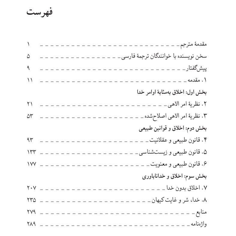 همچنین در این کتاب دربارهٔ مسئلهٔ اخلاق و خداناباوری هم بحث خواهد شد: خداناباوران چگونه بر اساس مبانی اخلاقی به باور به وجود خدا ایراد وارد کردهاند و اخلاق در نظر آنها چگونه است؟