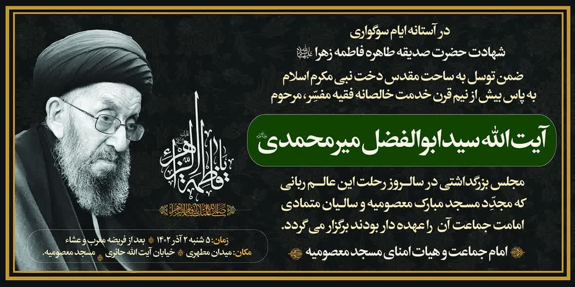 مبلغ/ آیتالله سید ابوالفضل میرمحمدی زرندی؛ مفسر و قرآنپژوه، عضو مجلس خبرگان رهبری و جامعه مدرسین حوزه علمیه قم و رییس اسبق دانشکده الهیات دانشگاه تهران، بود. رهبر انقلاب در پیام تسلیت این عالم پرهیزکار، از او به عنوان «عالم بزرگواری که عمر با برکت خود را با نزاهت و سلامت نفس گذرانیده و در دوران جمهوری اسلامی منشأ خدمات بودهاند» یاد کردند.