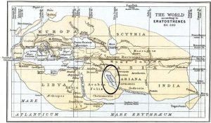نقشه جهان اراتوستن مربوط به سده سوم پیش از میلاد (قدمت بیش از ۲۲۰۰ سال) و اشاره به نام خلیج فارس
