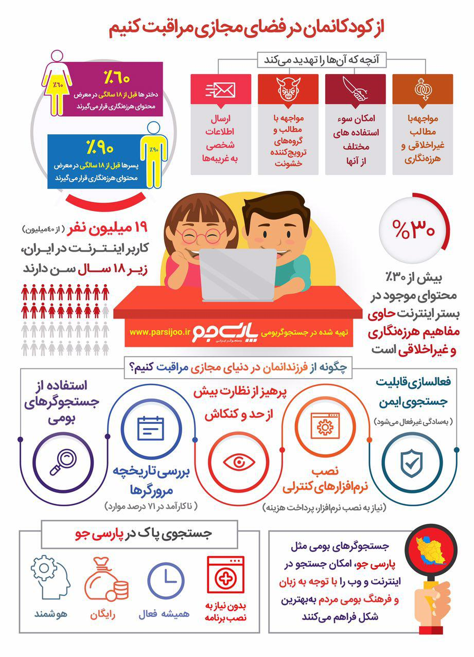 در ارتباط با نکته آموزشی محدود کردن برخی محتواها در فضای مجازی، این آمار هم منتشر شده که ۷۱ درصد بچه ها برای مخفی کردن کارهایشان در اینترنت تاریخچه مرور و ب گردی و سیف سرچ خود را غیرفعال می کنند. دراینجا نصب جستجوگرهای بومی می تواند کارساز باشد و بچه ها را جهت استفاده امن از اینترنت کمک کند.