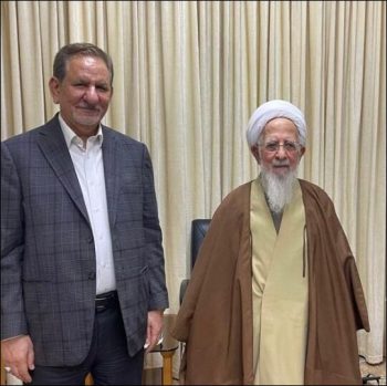 اسحاق جهانگیری به دیدار آیت الله جوادی آملی مرجع تقلید شیعیان رفت.