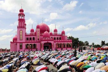 هر سال در اعیاد مختلف و باشکوه مسلمانان، در محوطه بیرونی این مسجد نماز جماعت این اعیاد برگزار میشود که این خود نشاندهنده احترام و علاقه مردم به این مسجد شگفتانگیز است. همچنین مسلمانان و نیز کودکان در ماه رمضان با پوشیدن لباس صورتی نمادی از هماهنگی را در این مسجد به نمایش میگذارند.