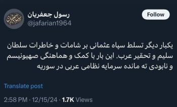 واکنش رسول جعفریان به وقایع سوریه