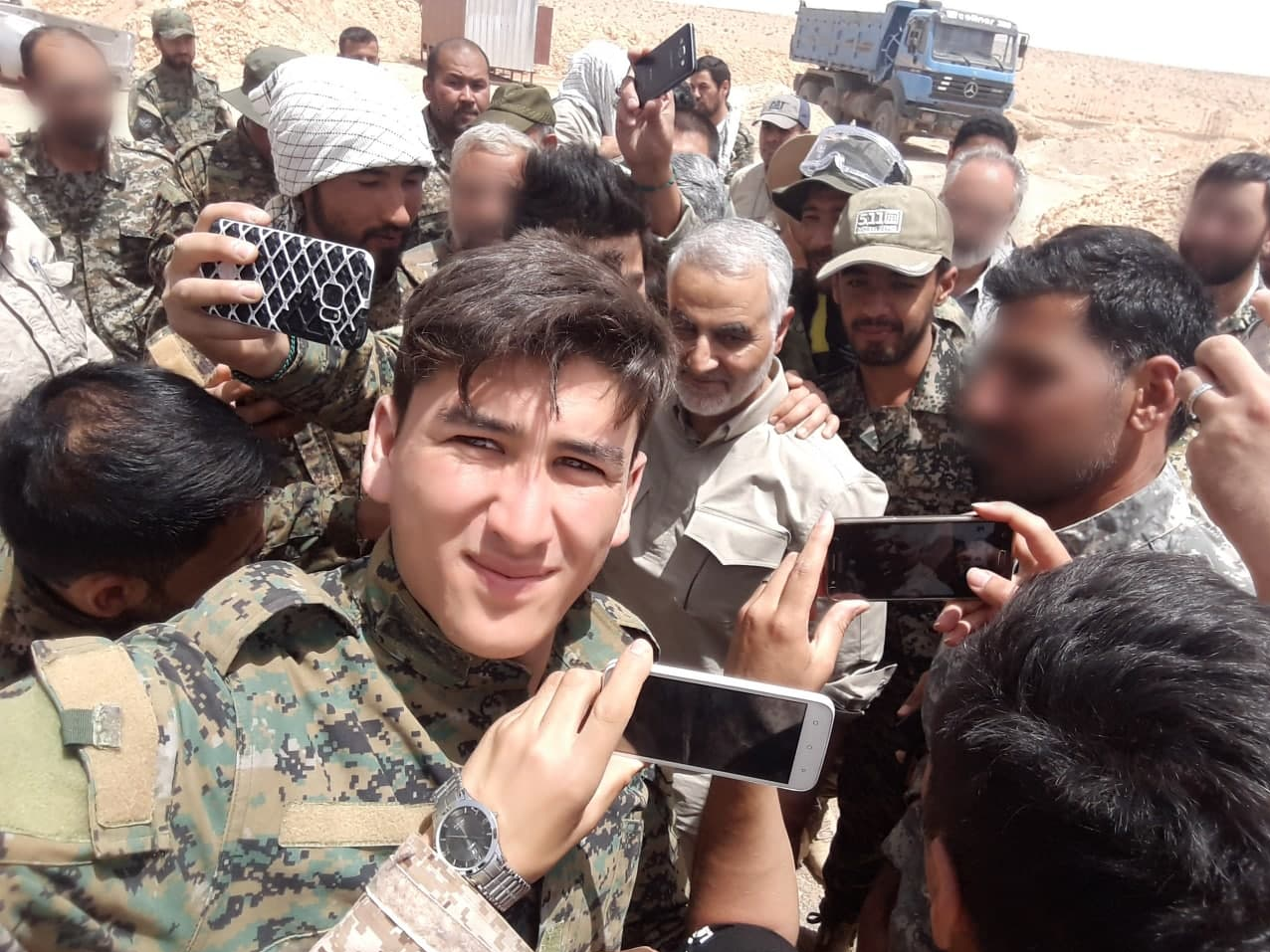 این فرمانده فاطمیون متولد ایران است؛ اما بعد از مدتی به افغانستان میرود و برای اولین بار سال ۱۳۷۹ در استان تخار افغانستان حاج قاسم را میبیند. او در افغانستان ازدواج میکند و صاحب فرزند میشود. این فرمانده فاطمیون درباره حضورش در سوریه میگوید: در زمان حمله داعش به سوریه و عراق در افغانستان بودم. با شنیدن این خبر در فروردین سال ۱۳۹۳ به ایران آمدم و یک ماه بعد به سوریه رفتم. همسر و فرزندانم در افغانستان بودند. یکی از فرزندانم در زمانی که در سوریه بودم به دنیا آمد. بیش از سه ماه در سوریه بودم و برای دیدن خانواده به افغانستان رفتم و سپس با خانواده به ایران بازگشتیم و خودم راهی سوریه شدم. یک ماه قبل از شهادت ابوحامد، حاج قاسم در حلب بود. من هم در بهمن ماه سال ۱۳۹۳ حاج قاسم را آنجا از نزدیک دیدم.