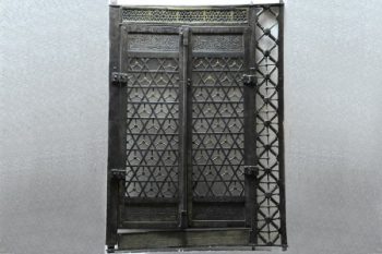 این پنجره در ابعاد ۱۰۰ در ۱۲۶ سانتیمتر و دارای یک چهارچوب و ۲ لت با میلههای فولادی شبکهبندی شده و کتیبه نام سفارشدهنده و سازندگان بر صفحات بالا و پایین دو لَتِ پنجره به خط نسخ برجسته نوشته و زرکوب شده است.