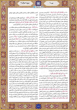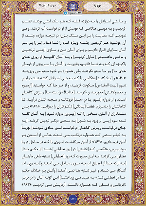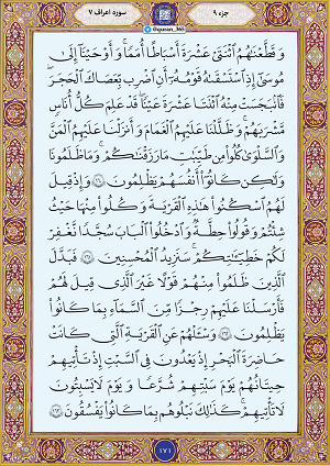 سرکشیهای بنی اسرائیل پایان ندارد و آنها در امتحان دیگری هم به جز اندکی مومنان رد شدند و آن هم ممنوعیت صید ماهی در روز شنبه بود که به جز یک گروه باقی به فرمان خدا توجه نکردند.سرکشیها و طغیان بنیاسرائیل قصه درازی است که سراسر عبرت است، زیرا آنها نعمتها و معجزات گوناگونی را دیدند و چشیدند اما باز ایمان نیاوردند، زیرا بر قلوبشان مهر زده شده بود و حق در آن اثری نداشت.در ادامه تلاوت ترتیل صفحه ۱۷۱ قرآن کریم شامل آیات ۱۶۰ تا ۱۶۳ سوره مبارکه اعراف با صدای شهریار پرهیزکار تقدیم میشود.