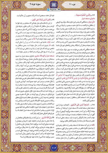 بنا بر روایت فارس،آغاز صفحه ۲۰۴ قرآن درباره مسجد ضرار است که منافقان آن را ساختند و خدا درباره آن فرمود که این مسجد باعث زیان، کفر و پراکندگی میان مؤمنان است و نیز کمینگاهی برای کسانی است که با خدا و پیامبر او از پیش در جنگ بودند و اکنون سخت سوگند میخورند که جز نیکی قصدی نداشتیم، ولی خدا گواهی میدهد که آنها قطعاً دروغگو هستند.