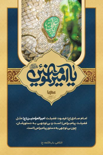 به گزارش پایگاه فکر و فرهنگ مبلغ، امام صادق(ع) فرمود: فضیلت امیرالمؤمنین(ع) مثل فضیلت پیامبر(ص) است و بیتوجهی به دستورشان، چون بیتوجهی به دستور پیامبر(ص) است. [الکافی، بابالأئمه، ح۱]