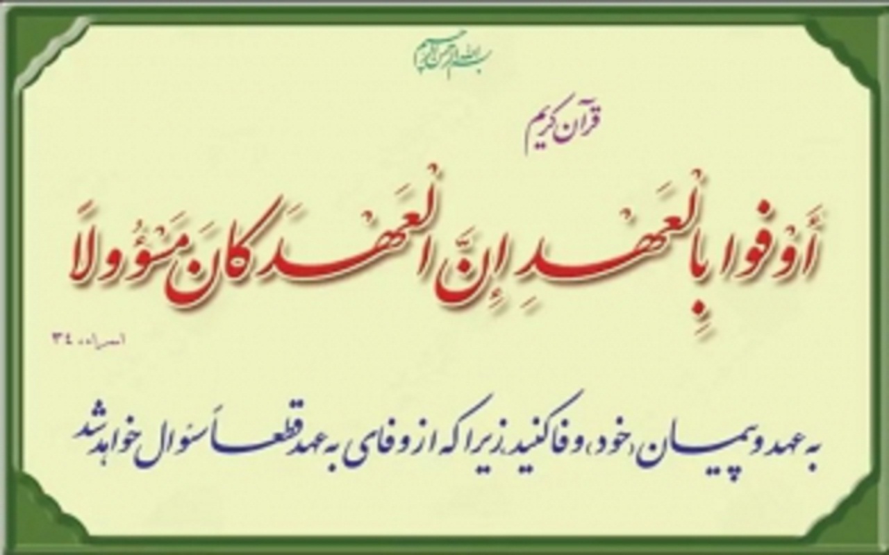 ۴. «لا دِینَ لِمَن لا عَهدَ لَهُ» (محمد بن محمد شعیری؛ جامع الأخبار؛ ص ۷۴).