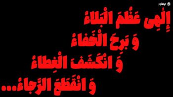 «إِلٰهِى عَظُمَ الْبَلاءُ، وَبَرِحَ الْخَفاءُ، وَانْکَشَفَ الْغِطاءُ»؛