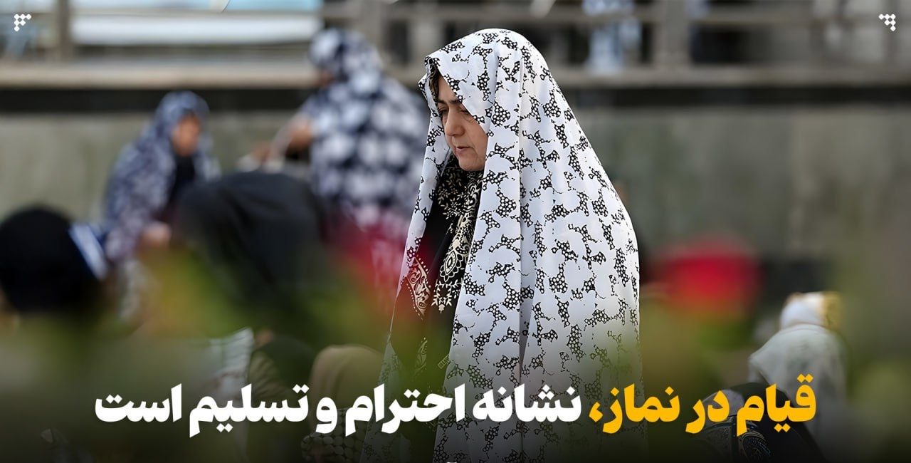 استقامت و حفظ میانهروی، از مهمترین امور است که نمازگزار باید در حال قیام و در پیشگاه خداوند چنانکه امر شده، بدان عمل کند، و همواره شرمگین و خجل باشد و سر را به زیر افکند و چشم را به سجدهگاه بدوزد و با یادآوری جایگاه کوچک و حقیر خویش، خود را در محضر خداوند که همه کائنات تحت قدرت او هستند، ببیند. (امام خمینی، سرالصلوه، صص۷۳-۷۲)