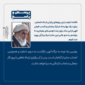 تقاضا دارم در این روزهای پایانی از ماه شعبان، برای درک بهتر ماه مبارک رمضان و کسب فیض الهی از این ماه برای بنده توصیه‌ای بفرمایید تا بتوانم به نحو عالی این ماه را درک و از آن بهره‌مند شوم.