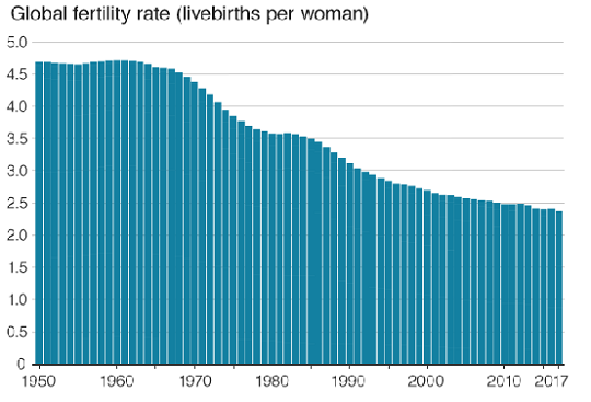 نرخ باروری در جهان: از سال ۱۹۵۰ تا ۲۰۱۷